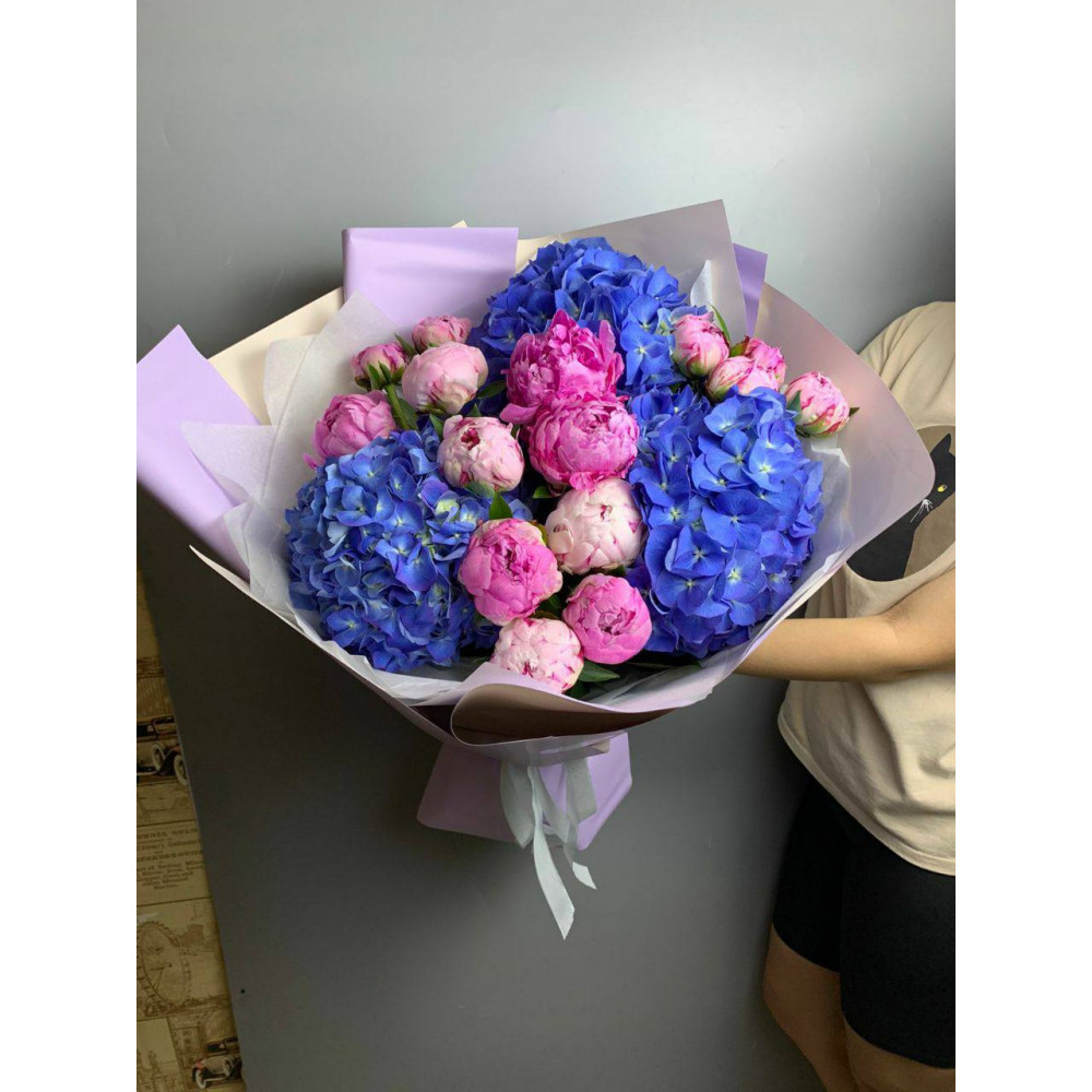 Букет "Selena" с гортензиями и пионами – это идеальный способ добавить роскоши и романтики в любой момент, сделав его незабываемым и особенным.