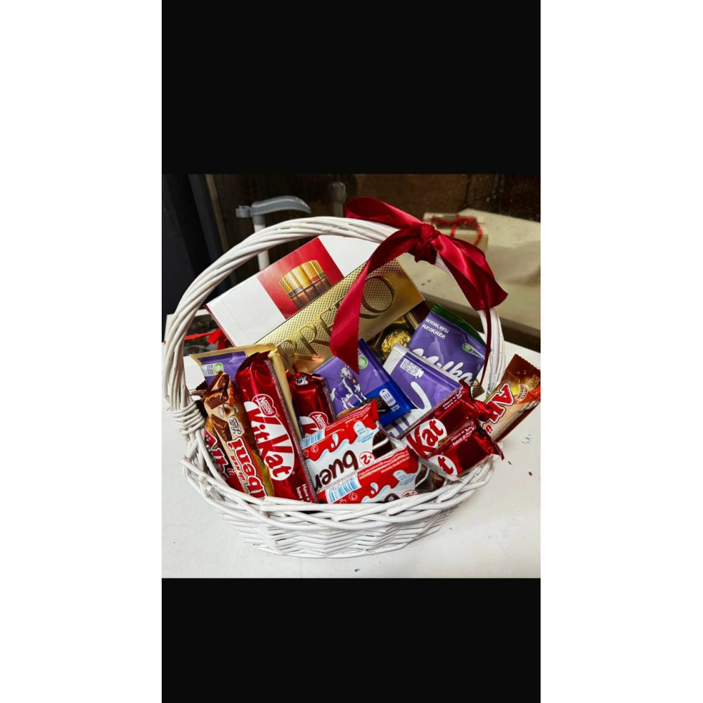 Маленькая корзинка со сладостями приятно порадует и поднимет настроение в дождливый денек даже самому печальному вашему близкому человеку. Давно известно, что шоколад – это источник энергии и жизненных сил, а его поедание наполняет нас эндорфином – так называемым гормоном счастья. Заказывай эту чудесную корзинку сладостей прямо сейчас и наслаждайся улыбкой на лице близкого человека. Мы организуем доставку в любую точку … в удобное время по низкой цене.